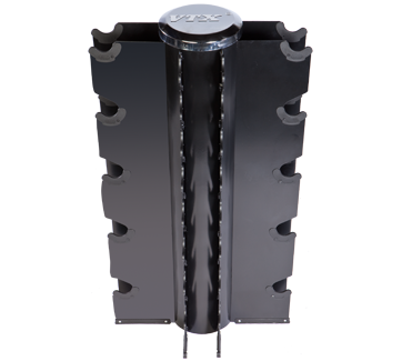 Product Description: This compact vertical dumbbell rack is designed to hold 13 pair of hex or VTX dumbbells ranging from 3 to 50 lbs. The user friendly design allows for easy access.